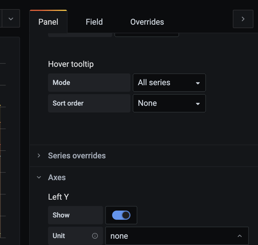 우측에 Panel 탭에서 보시면 Axes 섹션에 Left Y 에 대한 단위 설정이 있습니다. 현재는 none 인데, 이걸 short 로 바꿔줍니다.