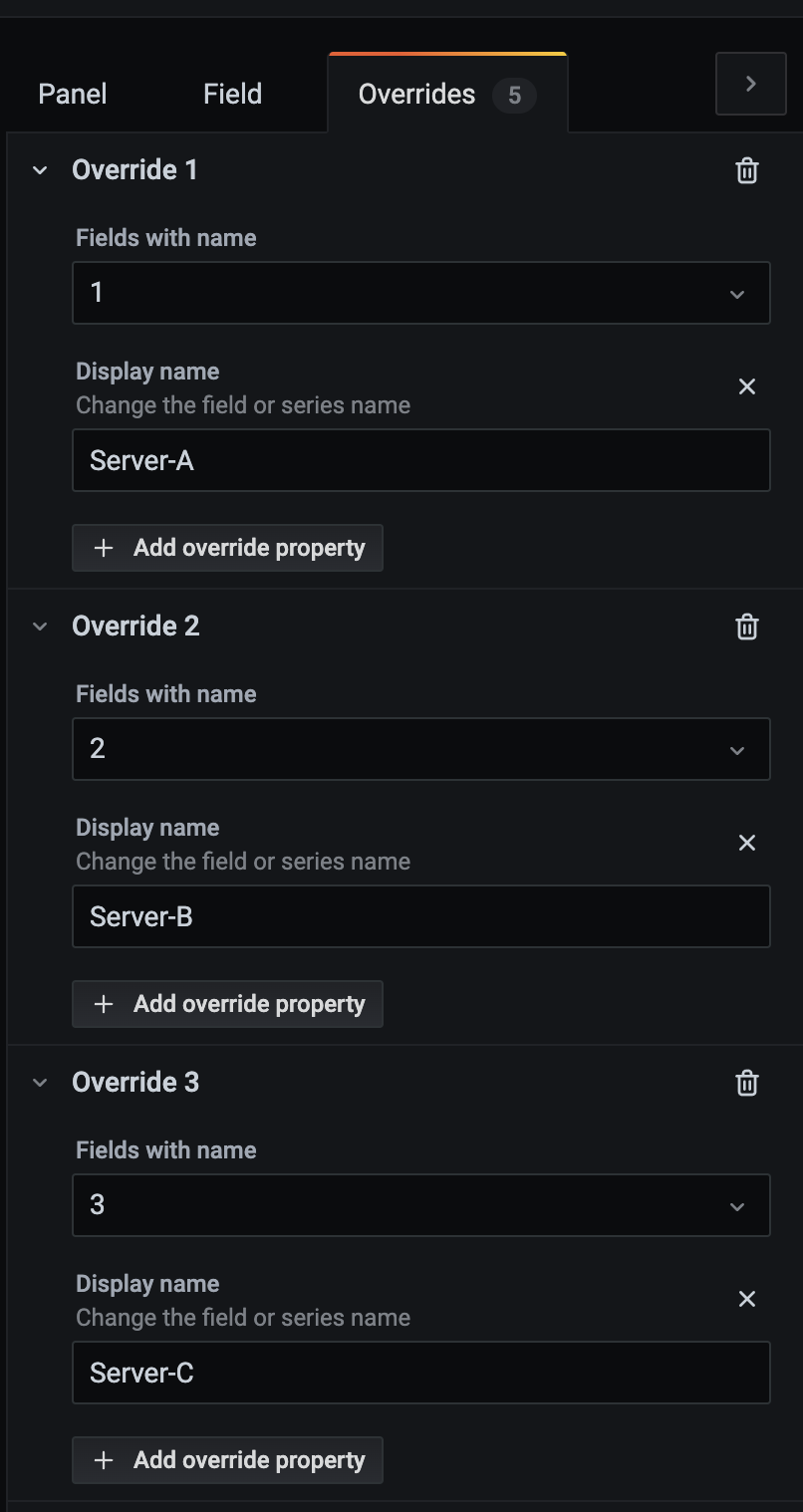 물론 메트릭을 수집할 때 부터 숫자가 아닌 식별이 가능한 문자열을 사용하는 것도 방법이겠지만, 이렇게 메트릭을 수집해도 Grafana 에서 쉽게 처리가 가능합니다.