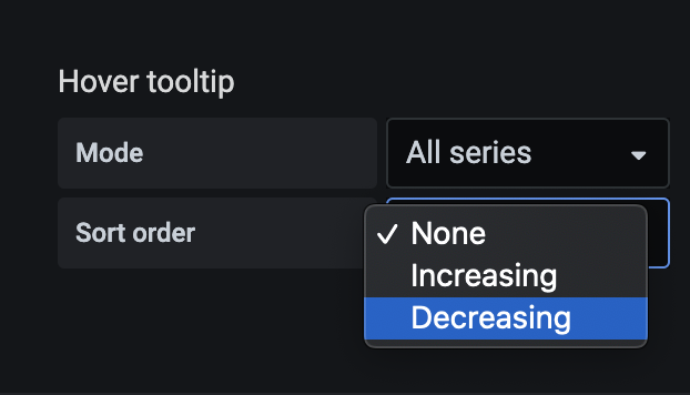 세팅 후 동일하게 그래프에 마우스오버를 하면, 해당 포인트의 메트릭이 내림차순으로 정렬되어 보여지는 것을 확인할 수 있습니다.