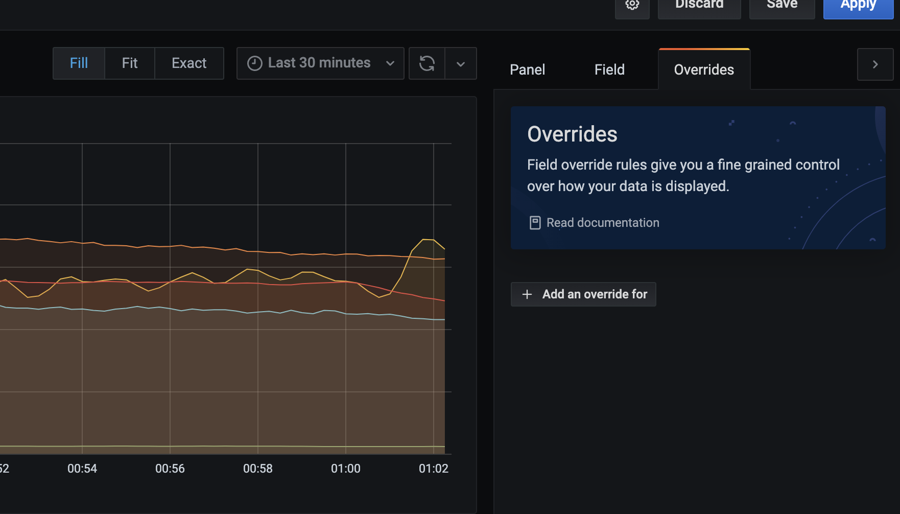 트래픽을 시각화한 대시보드를 예시로 Overrides 기능에 대해 알아보도록 하겠습니다.