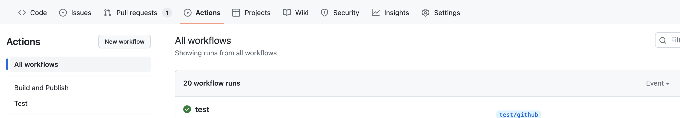 오른쪽에서 해당 workflow 가 수행된 내역을 확인할 수 있습니다. (Build and Publish 는 제가 따로 만들어둔 것이니 무시하셔도 됩니다)