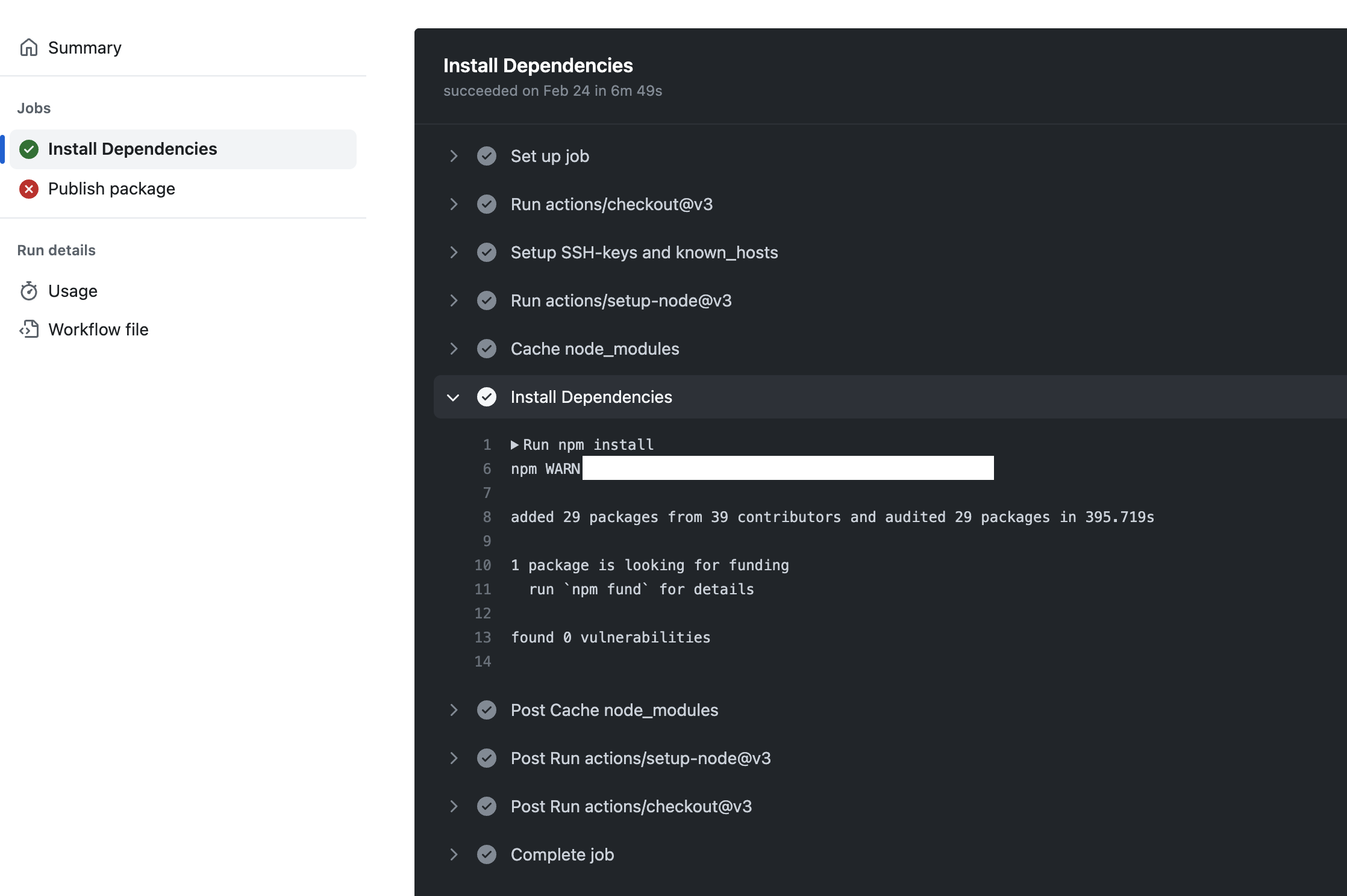 문제는 github actions 으로 테스트를 하던 publish 를 하던 npm install 을 하는 과정에서 발생했습니다.