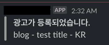 충분히 나중에 확장될 수 있지만 우선 이 서비스는 광고가 등록되었을때만 사용된다라고 가정하고, slack api 를 사용해 채널로