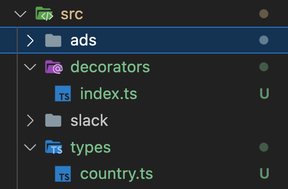 먼저 저는 src 하위에 decorators/index.ts 와 types/country.ts 파일을 생성했습니다.