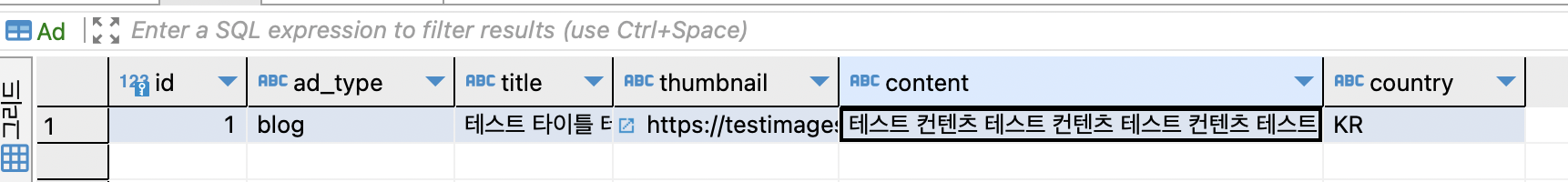 누락했던 content 컬럼 추가와 adType 과 title 의 length 를 잘못 설정해서 약간 늘려주었습니다.