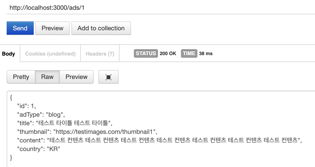 간단하게 모든 광고 리스트를 조회하는 findAll 메서드와 단일 광고를 조회하는 findOne 메서드도 위처럼 작성을 해봤습니다.