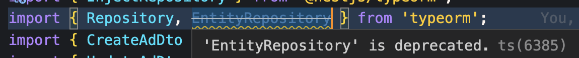 하지만 EntityRepository 데커레이터는 0.3 버전으로 넘어오면서 deprecated 되었습니다.