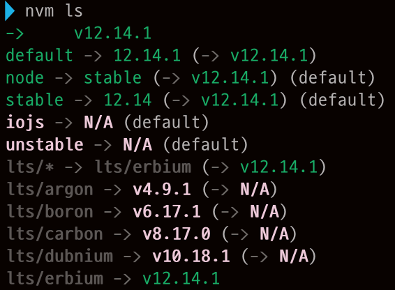 지난번 nvm 을 통한 Node.js 세팅시 설치 여부를 nvm ls 명령어로 확인하였는데, 출력되는 항목들에 대해 간략히 정리해보고자 합니다.