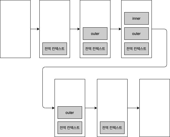 - outer 함수가 종료되고 전역 컨텍스트가 활성화 됩니다.